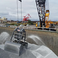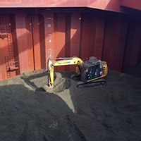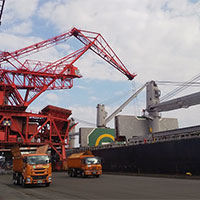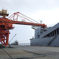 主にバイオマス発電所向けの木質ペレットの荷揚げを専用のクレーンを使用し、行っております。